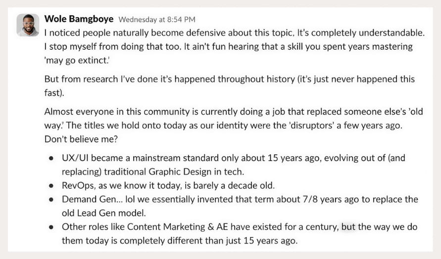 RevOps is barely a decade old. Demand Gen was invented 7 or 8 years back. Everyone in this community is currently doing a job that replaced someone else's old way.